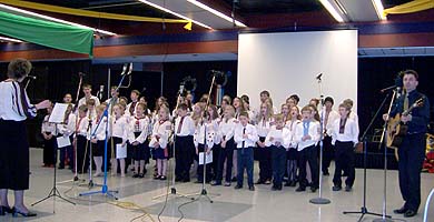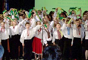 Саскачеванські Студенти Українських мовних програм співають пісню з нагоди Століття Саскачевану.